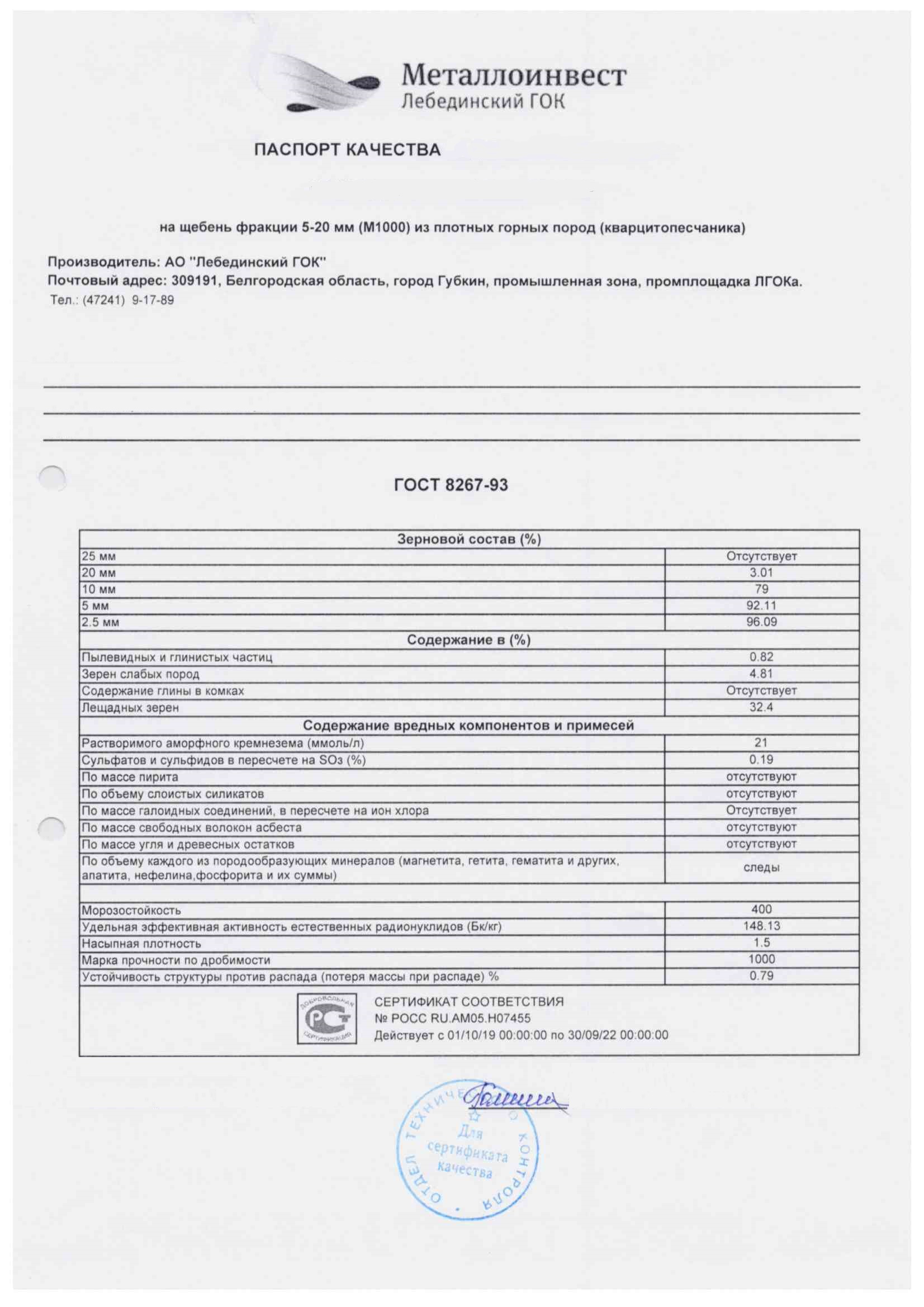 Лебединский ГОК 1 тонна Стоимость доставки рассчитывается отдельно |